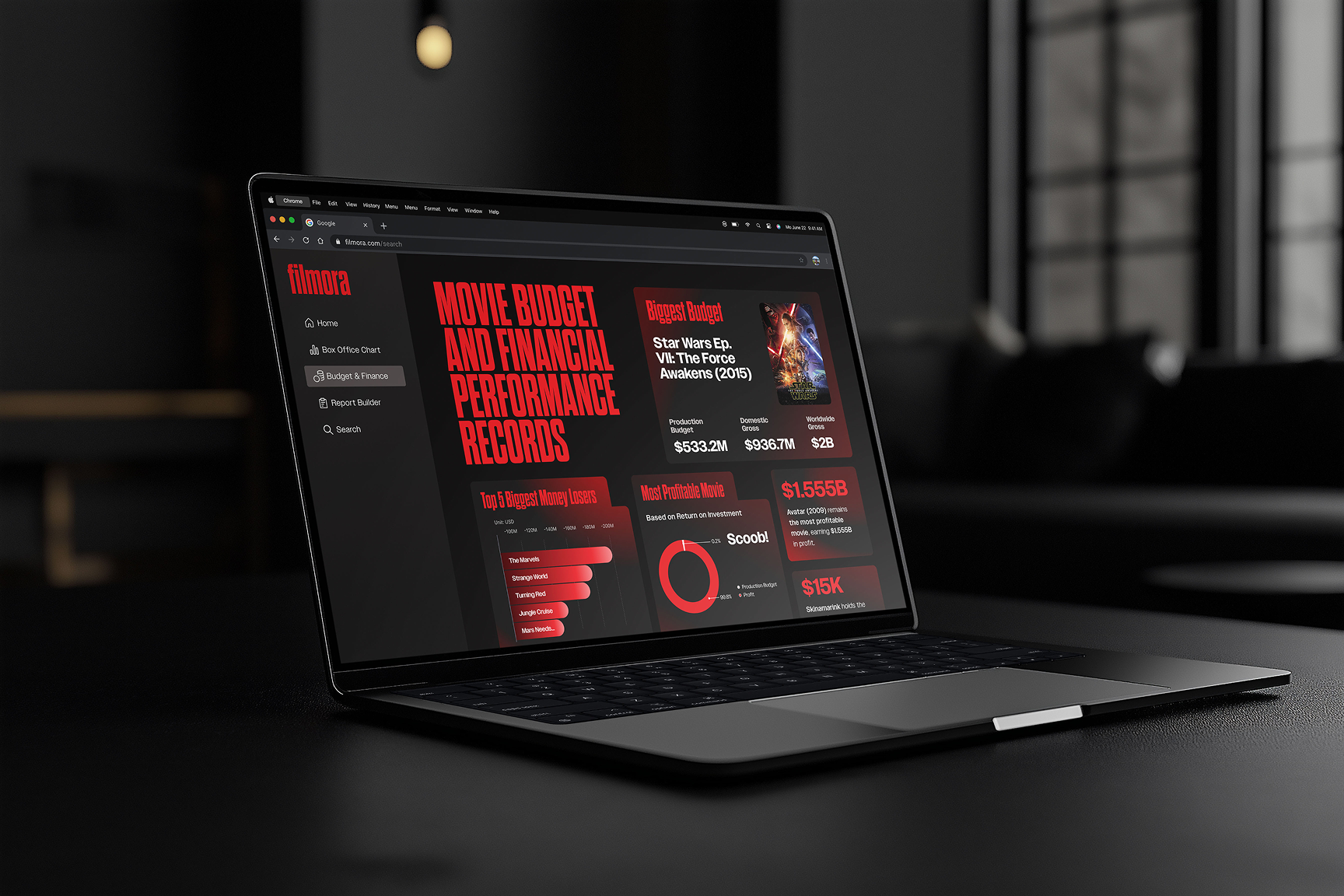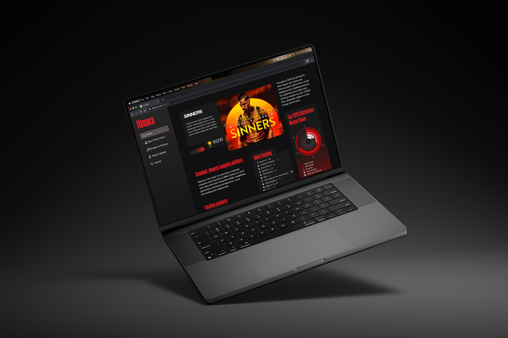 Filmora combines real-time box office data, trend analysis, and community engagement in one clean, user-friendly platform. Users can explore ratings, revenue analytics, and emerging trends while also creating profiles, writing reviews, and connecting with fellow film lovers.
