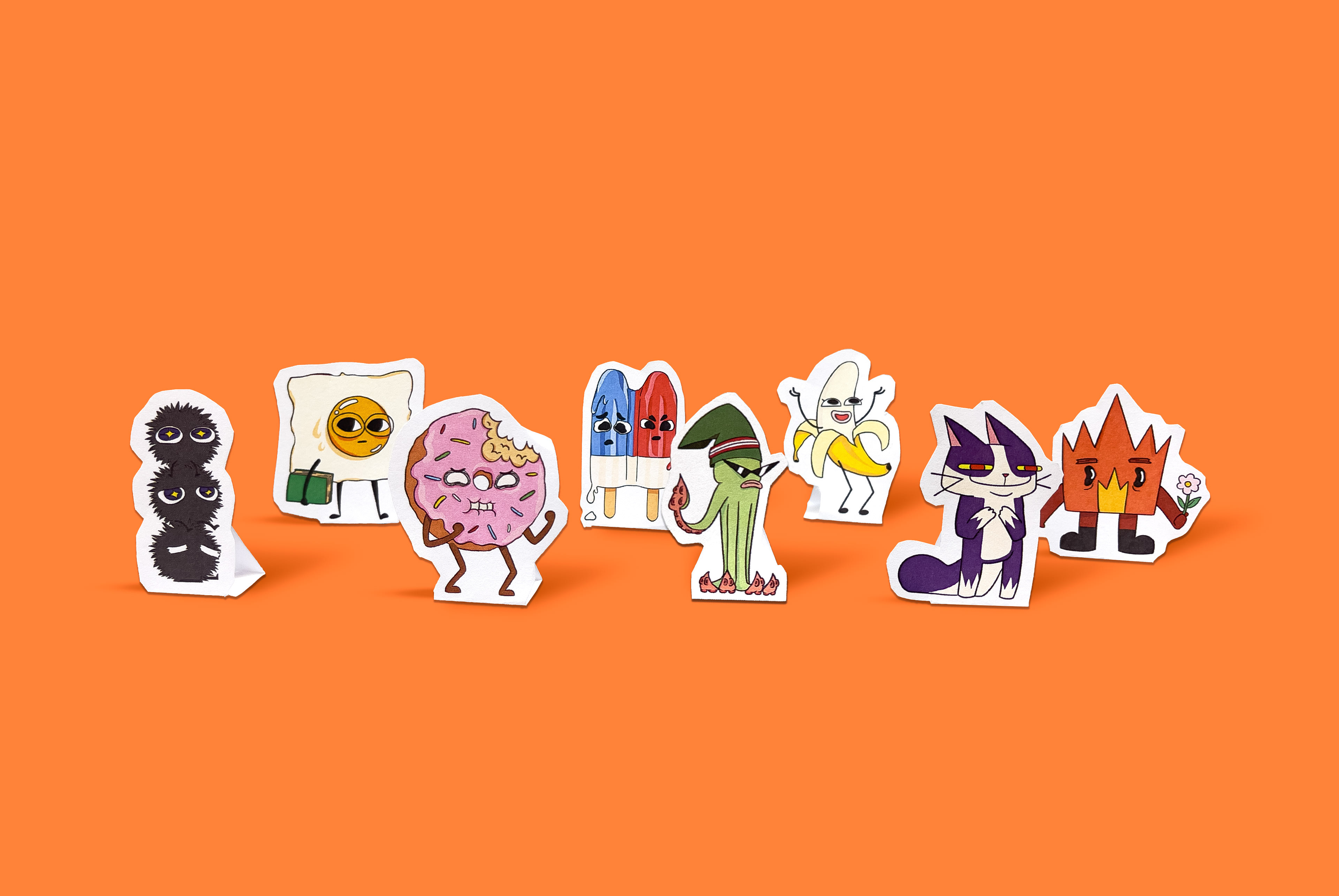 The visual language draws inspiration from The Game of Life and Adventure Time, characterized by absurdity, charm, and approachability. Characters are quirky yet emotionally expressive, designed to capture attention while representing a range of identities and behaviors. A bold black-and-white sketchbook style reduces clutter and supports neurodivergent players, balancing clarity with playfulness.